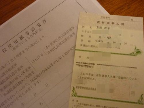まず何よりも、海外に住む日本人が選挙権を行使するためには、「在外選挙人証」なるものを貰わなくてはいけません。