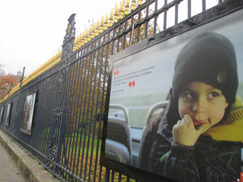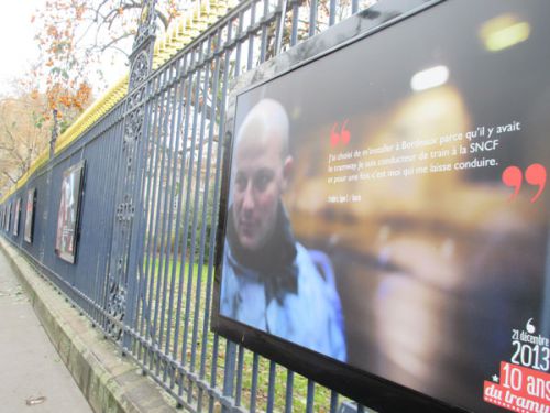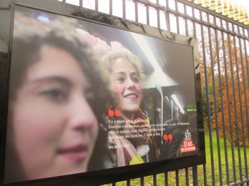この10周年を記念して、現在、まちの中心にある公園で写真展示がされています。先日まで世界の通学路の写真があった場所は、今ではすっかり雰囲気がかわりトラムムード満載です。