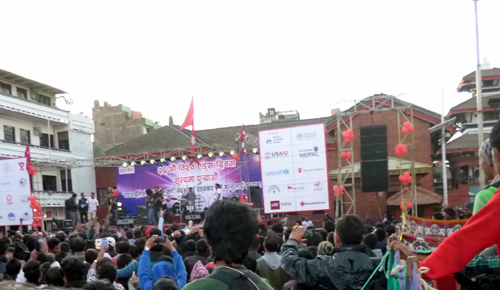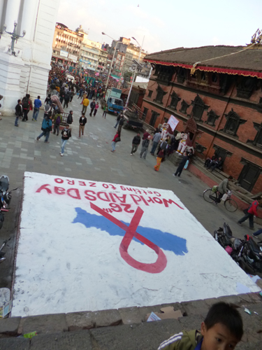 毎年12月1日は「世界エイズデイ」で、HIV、AIDS患者に対する差別をなくし、正しい理解のもと、サポートをしようという日です。ここカトマンズでも、旧王宮広場バサンタプルにて大きなイベントが開催されました。