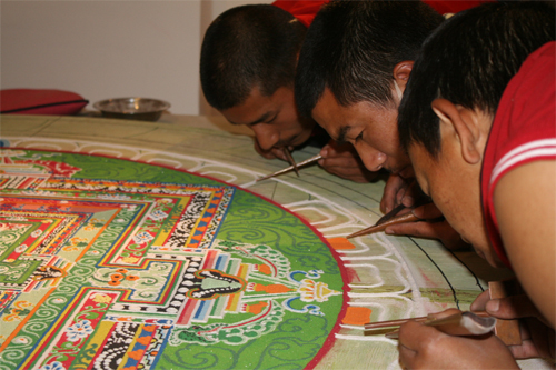 今まで見たい、見たい、と思っていた砂曼荼羅の製作現場を念願かなってやっと見ることが出来ました!