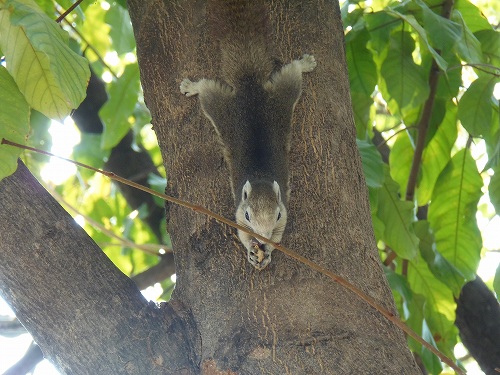 木に張り付いて餌を食べるリスです。リスってこんな格好もできるんですね。暑さを忘れさせてくれる一瞬です。