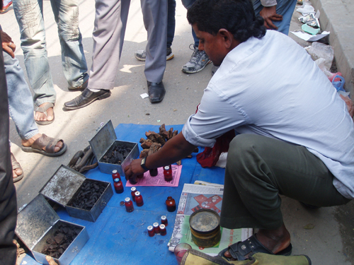 これ以外にも痛いところがすぐ治る!などというオイルも時々に見かけます。サソリの黒焼き?のようなものが見えていますが、有効成分の元でしょうか?