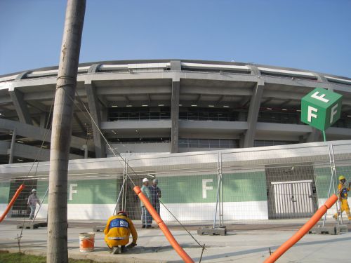 同日午前、マラカナンを見学に訪れた。入口の係員に聞くと「7万7千人の観客を収容可能です」と、誇らしげにいう。中には入れなかったが、外から見る限りまだ周辺の整備が終わっていない。砂やブロックを運ぶトラックが行き来し、作業員が歩道や柵の補修に掛かりっきりだった。