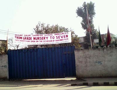 先月から、いくつかの私立学校の門には横断幕が掲げられていました。「サラスワティプジャの日は入学申込金なし!」