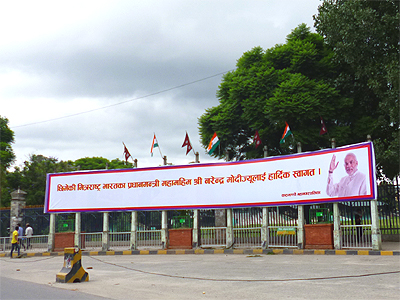 7月末、新しくインドの首相になったモディ氏が、同国首相としては17年ぶりにネパールを訪問するということで、カトマンズは急ピッチで歓迎の準備が進められていました。道路を整備、清掃し、鉢植えの花が飾られ、たくさんのインド、ネパールの国旗が掲揚されていました。