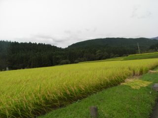 収穫の秋。黄金色の稲穂が輝いていました。忙しそうに収穫されている姿に新米を感謝していただこうと思いました。