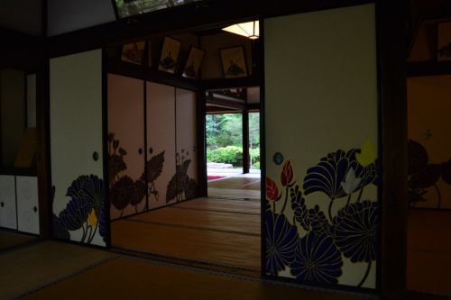 こちらは紅葉の時期に綺麗な青でライトアップされることで有名な青蓮院。有名な八坂神社や知恩院の近くにある落ち着いた場所です。ここは建物内の襖の模様が現代的な色つかいで、まさに新旧が融合する素敵な空間なんです。そこから眺める雄大な庭は、何時間でもいれる心地よさがあります。