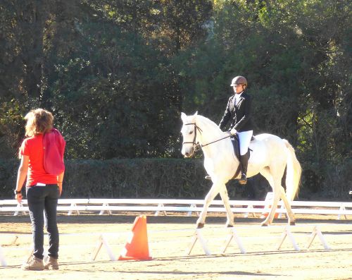 歩かせ方、速歩、審査員への挨拶をチェックされ、途中で、スムーズに鐙(あぶみ)を外したりしなくてはなりません。