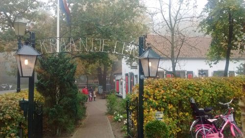 店名「Kraantje Lek」が針金のような文字でアーチに書かれていますね。
