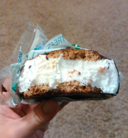 1928年にジョージ?ウィトニーというかたが、バニラアイスクリームをオートミールクッキーで挟み、ダークチョコレートにひたして販売したのが始まりです。