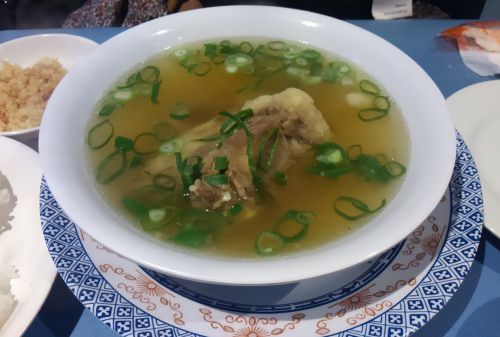 こちらのお店で人気なのがこちらのオックステールスープ。注文をするとパクチーがたっぷりですが大丈夫ですか?と聞かれます。私はパクチーが苦手なので、別添えにしてもらえるか聞くと大丈夫だとのこと。友人は自分の器にパクチーを入れながら食べて、私はパクチーなしでシェアして食べました。スープが澄んでいて、旨味が凝縮。ぐびぐび飲めてしまいます。しかも中に入っているテールがとろとろ。たっぷりの生姜に醤油をかけていただくのがこのお店のおすすめの食べ方です。ライスがつくのでスープに入れて食べるとこちらも美味でした。