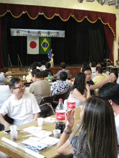 新年会の参加は2度目という池尻ナオミ・カーレンさん(23)は「私は3世。もう一度、北海道へ行きたい」と目を輝かせた。同協会理事の中浜ヒロシ・オズマールさん(67)=税理事務所経営=は「日本へ行って、うまい日本酒を飲みたいね」と笑った。