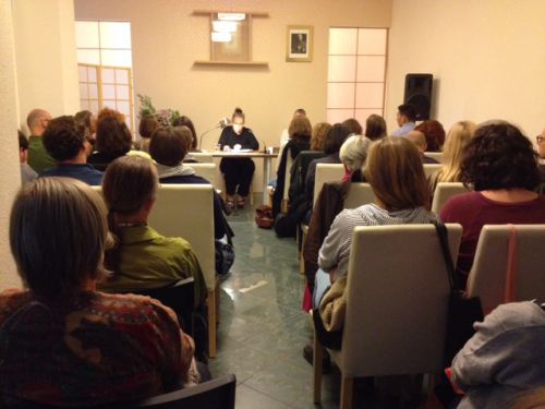 この日、小さめの会場は満員。約数十人が参加していましたが日本人はわずか2、3人。村上春樹はドイツ語圏でも絶大な人気なのです。