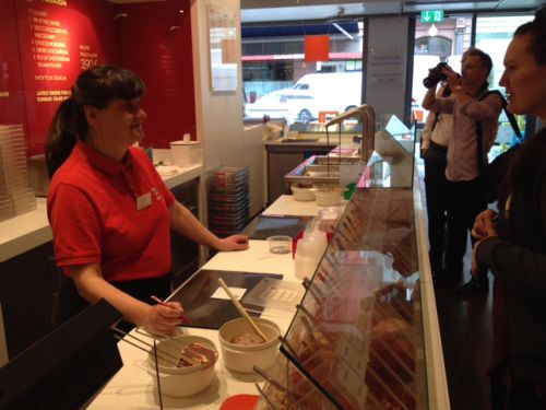 1階には大小さまざま、種類も盛りだくさんのチョコレートがずらりと並び、2階にはチョコレートの製造過程を示した展示やチョコ・カフェなどがあります。このカフェではリッタースポーツのケーキやアイスも食べられます。