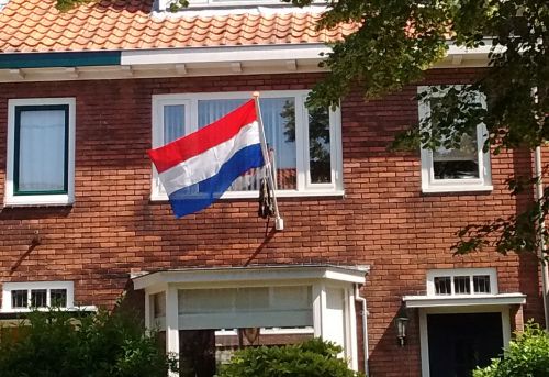 この動画の最後、合格通知に喜ぶ生徒の家では、オランダ国旗に何かをつけて掲揚しています。