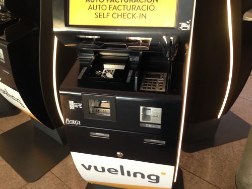 ところが、今年、より簡略化され、荷物を預ける工程をもセルフでという航空会社の無人化が進んでいます。まず、航空券を購入した時に頂く予約番号と苗字を上の写真の機械に入力。すると、搭乗券がすぐに出てきます。