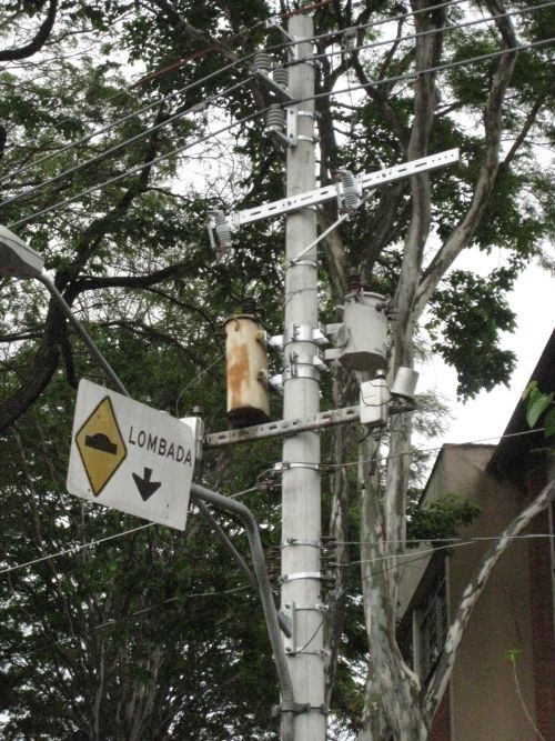 サンパウロ市住宅街の電柱に設置してある変圧器