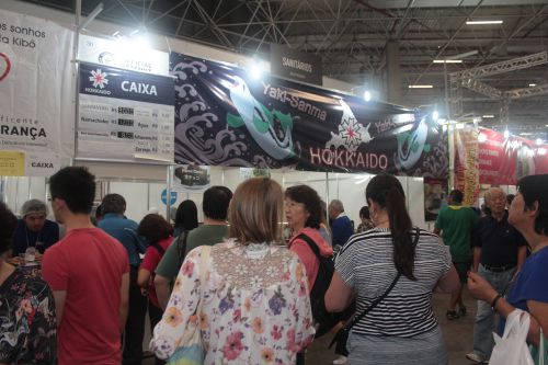 各都道府県人会のブースには郷土料理が並び、連日、正午ごろになると各食券売り場に20人ほどの行列。ブラジル北海道協会では焼きサンマとイカやエビ、タコ入りの北海ちらし寿司などを販売した。三世のアンジェラ・西山さん(39)=主婦=は「おいしい。こんな日本料理がブラジルで食べられるなんて幸せです」と、目を輝かす。