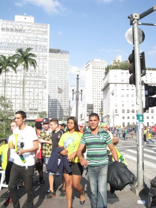 夏真っ盛り。サンパウロ市の中心街を歩く市民