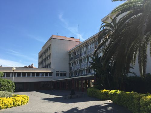 バルセロナ市サンパウ病院 各受付室入り口に椅子があり侵入禁止になっている